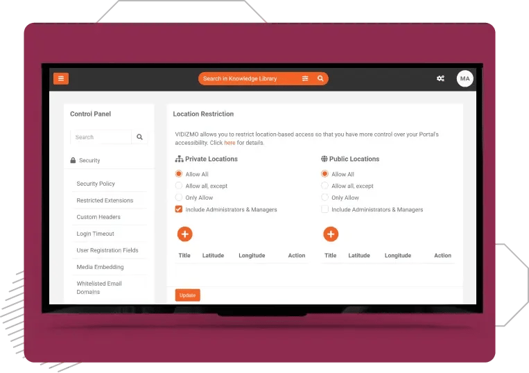Pick between options like allow all, allow only, and allow except. You can even opt to exclude your portal’s managers and administrators as part of your restriction rules.
