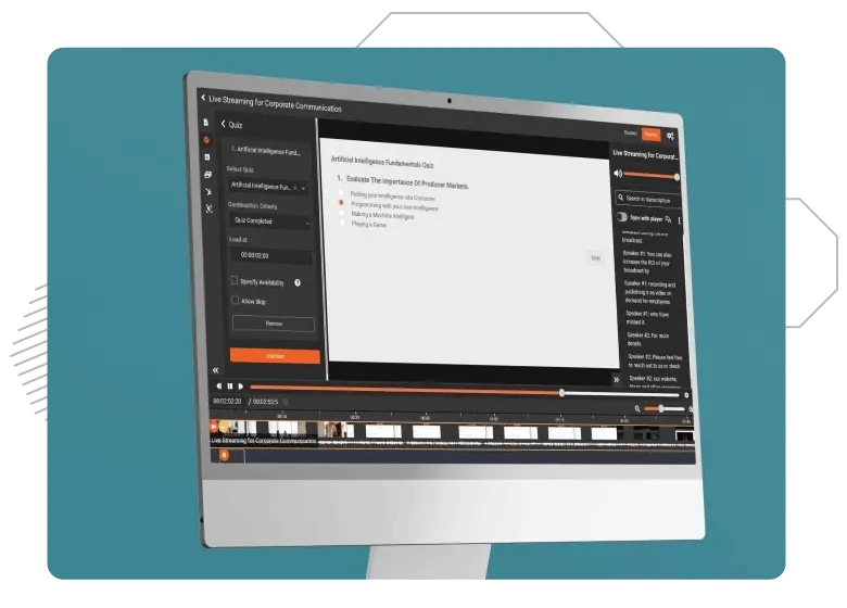 Test the knowledge of your users and assess their understanding. EnterpriseTube’s video interactivity platform lets your viewers get involved with your content by adding interactive video quizzes.