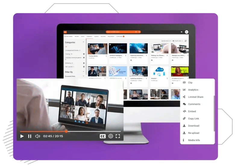 Ease yourself into managing video content and other digital media in 255+ formats using our user-friendly enterprise video platform.