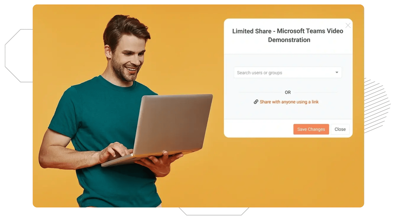 Make sure your content ends up in the right hands with limited access sharing. Share one or multiple files with internal or external users, giving them access to view, edit, share, and more.