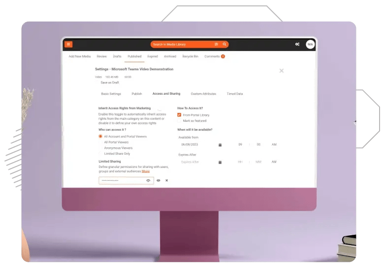 Grant media access to specific users, ensuring it gets viewed by those it is intended for. Use passwords to protect video content and digital media to maintain exclusivity.